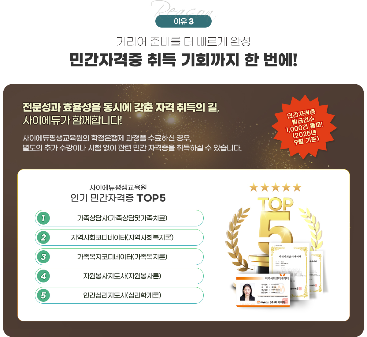 늦게 시작한 공부라서 처음에는 막막했었는데, 온라인 강의가 충실하게 잘 되어 있었고 덕분에 시간적으로 자유롭게 원하는 때에 강의를 듣고 제대로 된 공부할 수 있다는 것이 큰 장점이라는 생각이 듭니다. 비용면에서도 처음에 고민했던 사이버대학 강의보다는 저렴했고 보다 짧은 기간 내에 수료할 수 있었습니다. 사이..